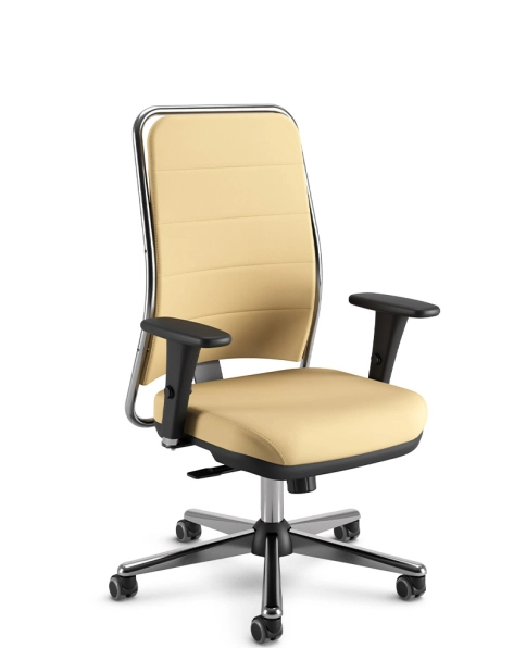 Modelos giratórios com Braços Reguláveis SL, SL New PU, SL New PP. Mecanismo Syncron de 4 estágios. Opções de Bases em Alumínio ou Nylon, com rodízios de 65mm em Nylon ou PU. Assento em espuma injetada com Regulagem de Altura à Gás.